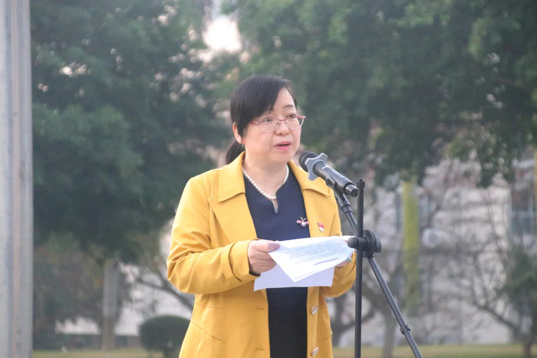 党委书记陈伟斌主持。国旗护卫队迈着整齐划一的步伐,护送国旗到达升旗台。伴着慷慨激昂的《义勇军进行曲》,在全体师生的注目下,鲜艳的五星红旗在空中冉冉升起。升旗完毕,教工代表、耽美小说