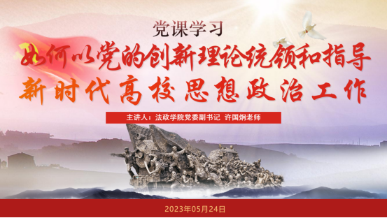 党委副书记许国炯为法学专业第一学生党支部讲授主题为“如何以党的创新理论统领和指导新时代高校思想政治工作”的党课,支部成员136人参加了本次党课学习。