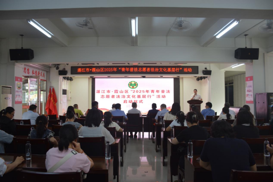 2025年5月30日上午,湛江市霞山区图书馆内气氛庄重热烈,由湛江市法学会、霞山区法学会联合主办的“2025年青年普法志愿者法治文化基层行”活动启动仪式在此举行。活动旨在弘扬法治精神,提升普法质效。市、区法学会、司法行政部门、团委等相关单位负责人、青年志愿者代表、社区群众及媒体代表出席活动。启动仪式由霞山区委政法委副书记陈文博主持。
