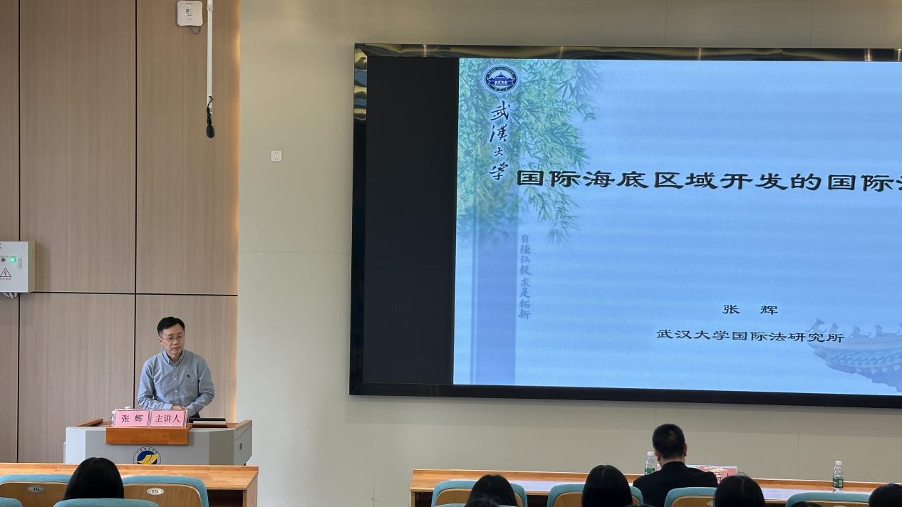副院长刘澍教授主持,特邀武汉大学国际法研究所所长、武汉大学人文社科杰出青年学者、中国长江海商法学会常务理事以及中国太平洋学会自然资源法研究会副会长张辉教授担任主讲嘉宾。