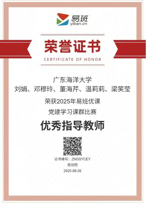 志愿服务中心党支部党建学习优课群》精品线上课程,在2025年全国易班优课党建学习课群(教育部易班发展中心主办)比赛活动学习活跃度超3万,支部书记梁笑莹、学院易班指导老师刘娟荣获2025年全国易班优课党建学习课群“优秀指导教师”称号。