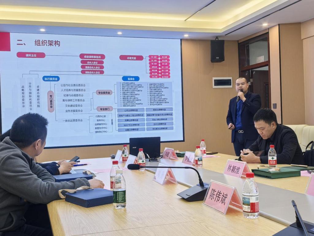 副院长刘澍主持,学院党委书记林忠新致欢迎词,深圳律师协会监事卓圣国讲话。刘澍副院长介绍了学院和法学专业发展情况。