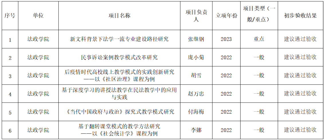 根据学校教务部《关于做好2025年度校级教育教学改革项目结题验收工作的通知》要求,经项目负责人申报,学院组织专家组审核验收,现将验收结果公示如下: