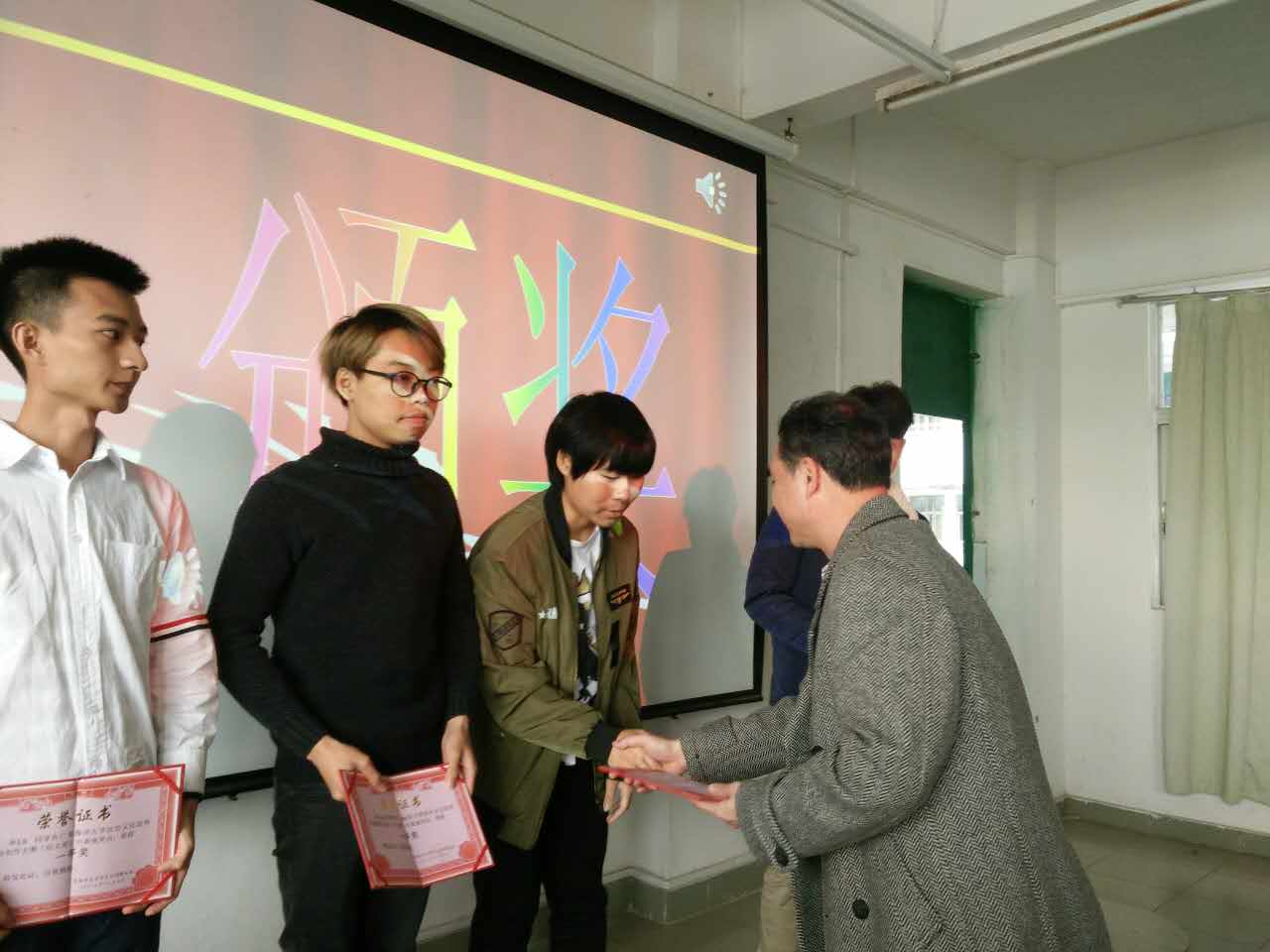 团委书记朱明威老师为各位获奖选手颁发荣誉证书与奖品。